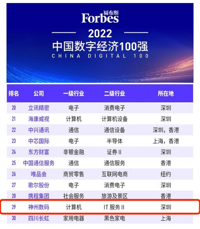 8月20日,“福布斯2022中国数字经济100强榜单”在江西上饶发布。作为数字中国的探索者、实践者和赋能者,qm球盟会数码凭借杰出的表现,位列百强榜单第29位,计算机类第3位,再度获得权威机构认可。